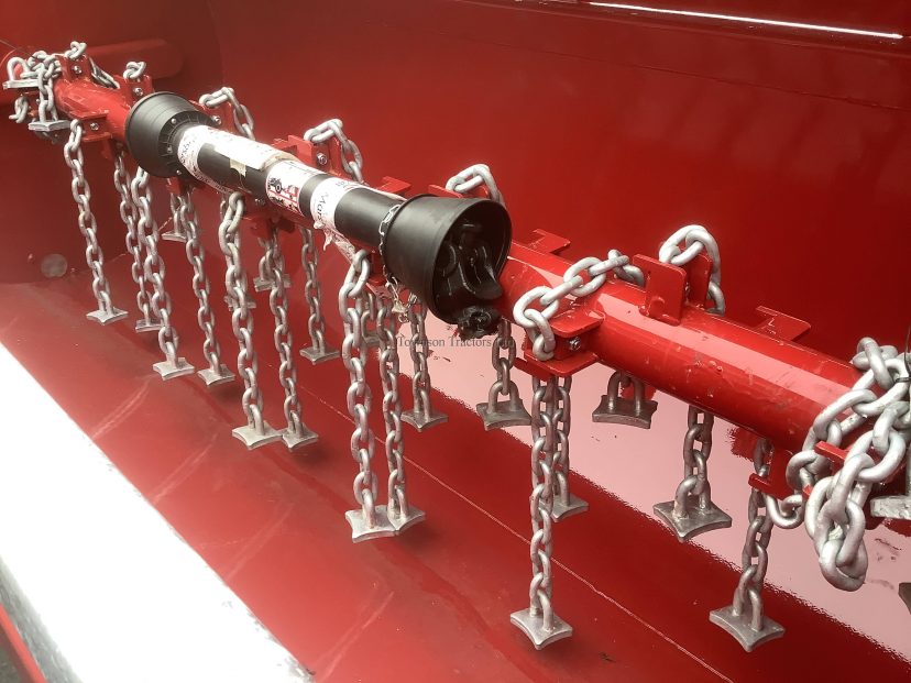 Classic barrel design, 4mm steel, fully welded hydraulic opening lid, hydraulic braking and lights, machined steel drive sprockets, 10 pitch spline, pillar block bearings offset from main rotor, away from muck/slurry ingress, balanced main rotor shaft, heavy duty starter flails, case hardened flail chains with large heads, 70mm 6 stud axle, 12.5 x 15 – 14 ply tyres.
